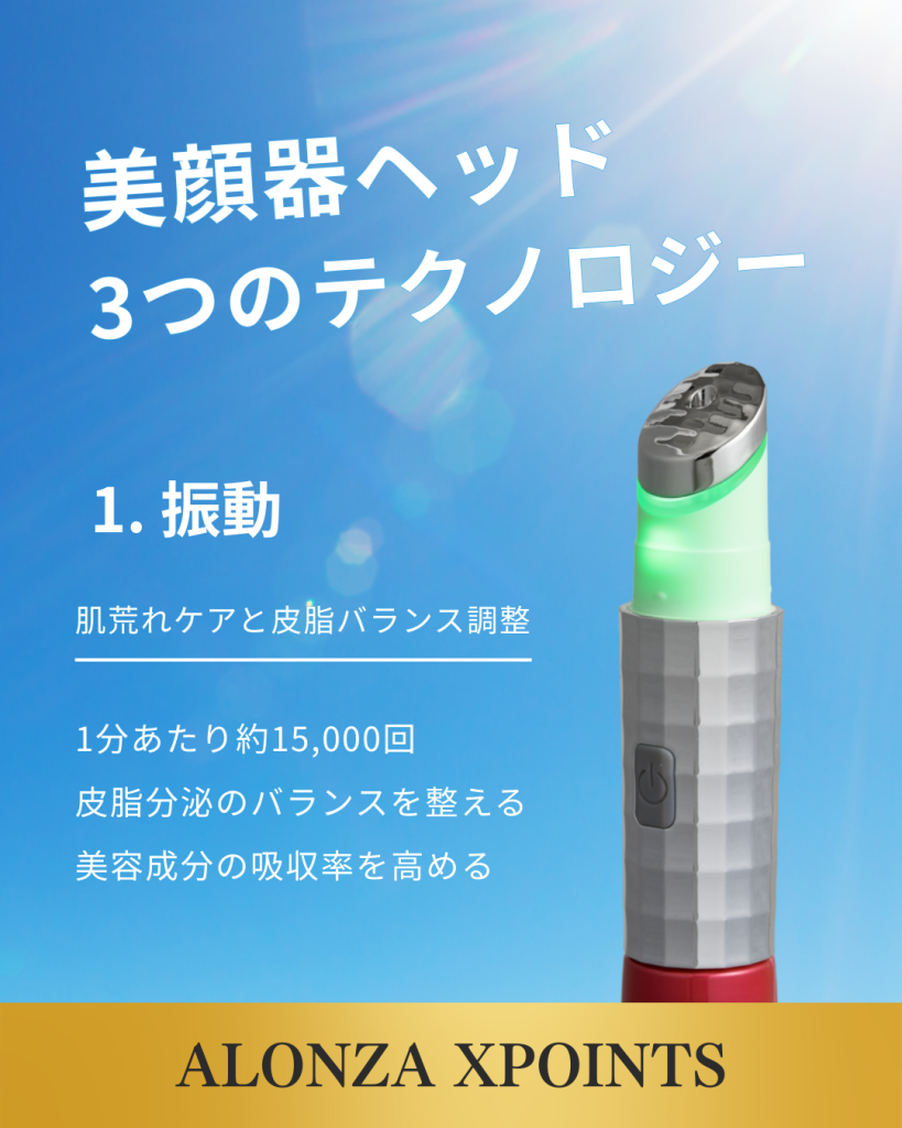 1分あたり約15,000回の繊細な振動が肌細胞をやさしく刺激し美容成分の吸収率を高めます。リンパマッサージでむくみ解消効果も。