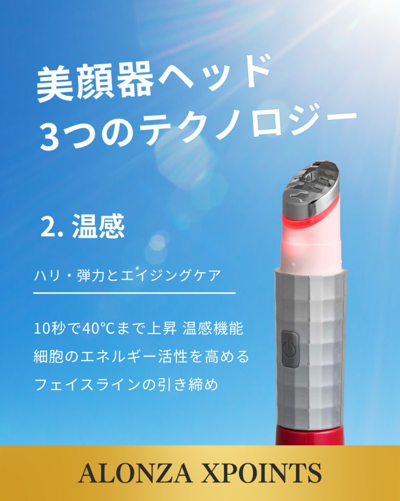 10秒で40℃まで上昇する温感で血行促進、肌細胞活性化。筋肉をリラックスさせ、肌を柔らかくすることで引き締めをブースト。